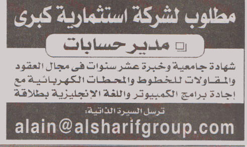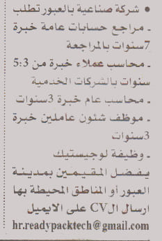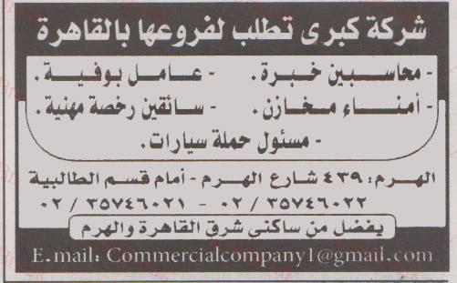 وظائف محاسبين من جريدة الاهرام المصرية لشركة استمارية