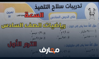 31. السعة حل تمرين 17 سلاح التلميذ رياضيات الصف السادس الابتدائي الترم الاول الدرس 6 الوحدة 3
