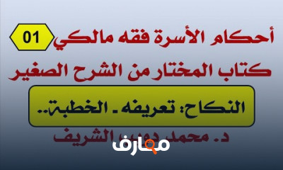 1. أحكام الأسرة فقه مالكي 01 كتاب المختار من الشرح الصغير النكاح تعريفه الخطبة د محمد دويب الشريف