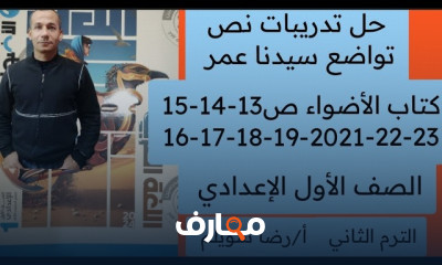 1. حل تدريبات نص تواضع سيدنا عمر أولى اعدادي الأضواء ص 17 18 19 20 21 22 23 الترم الثاني
