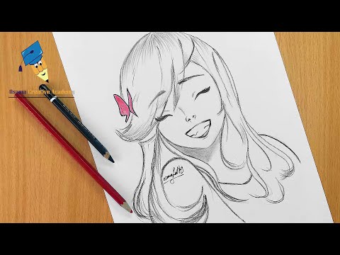 62. رسم بنت انمي ترتدي قبعة خطوة بخطوة |رسم بنت انمي سهل بالرصاص| رسم سهل بالرصاص