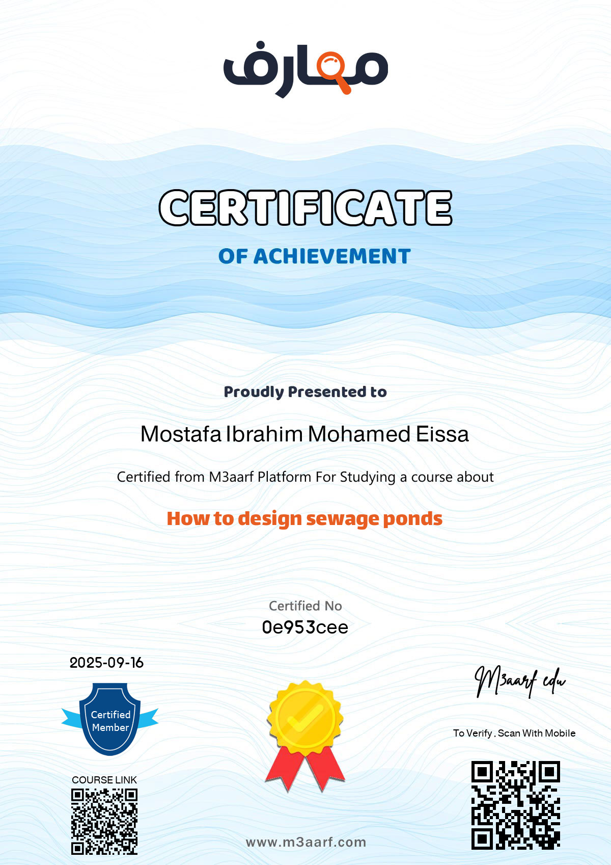 شهادة المتدرب Mostafa Ibrahim Mohamed Eissa