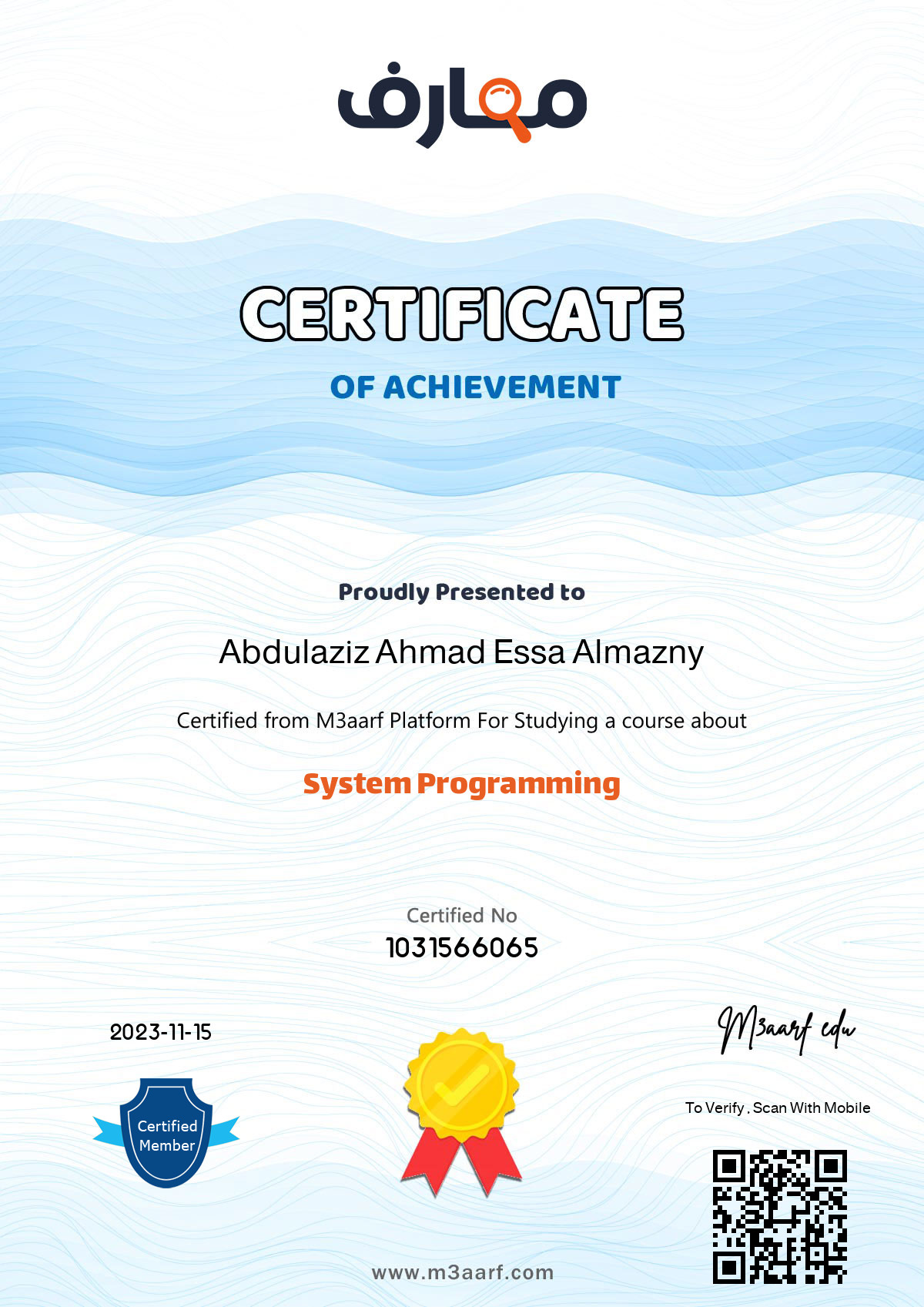 شهادة المتدرب Abdulaziz ahmad essa almazny