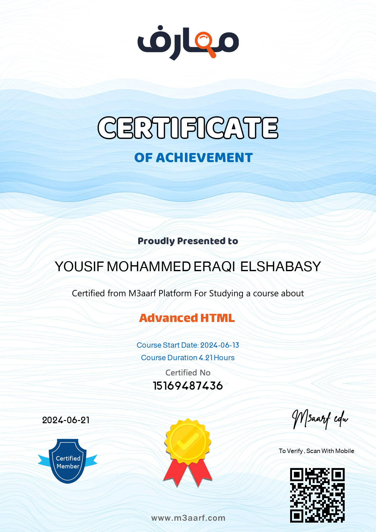 شهادة المتدرب YOUSIF MOHAMMED ERAQI ELSHABASY